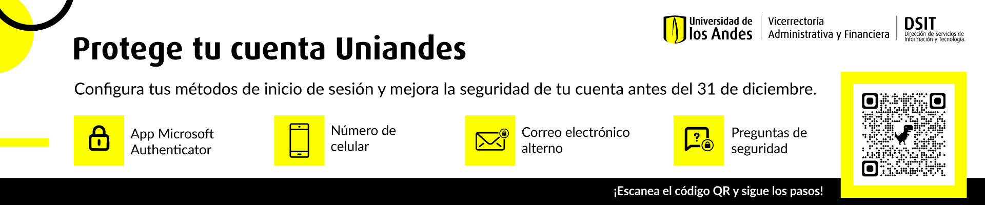 Cuando se vuelva a activar la autenticación en dos pasos en tu cuenta Uniandes, deberás configurar la app Authenticator en un dispositivo móvil. Consulta este video tutorial si tienes dudas sobre el proceso.